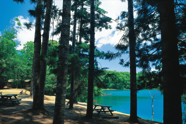 Surrounded by dense rainforest, this popular lake in north Queensland offers a range of activities.